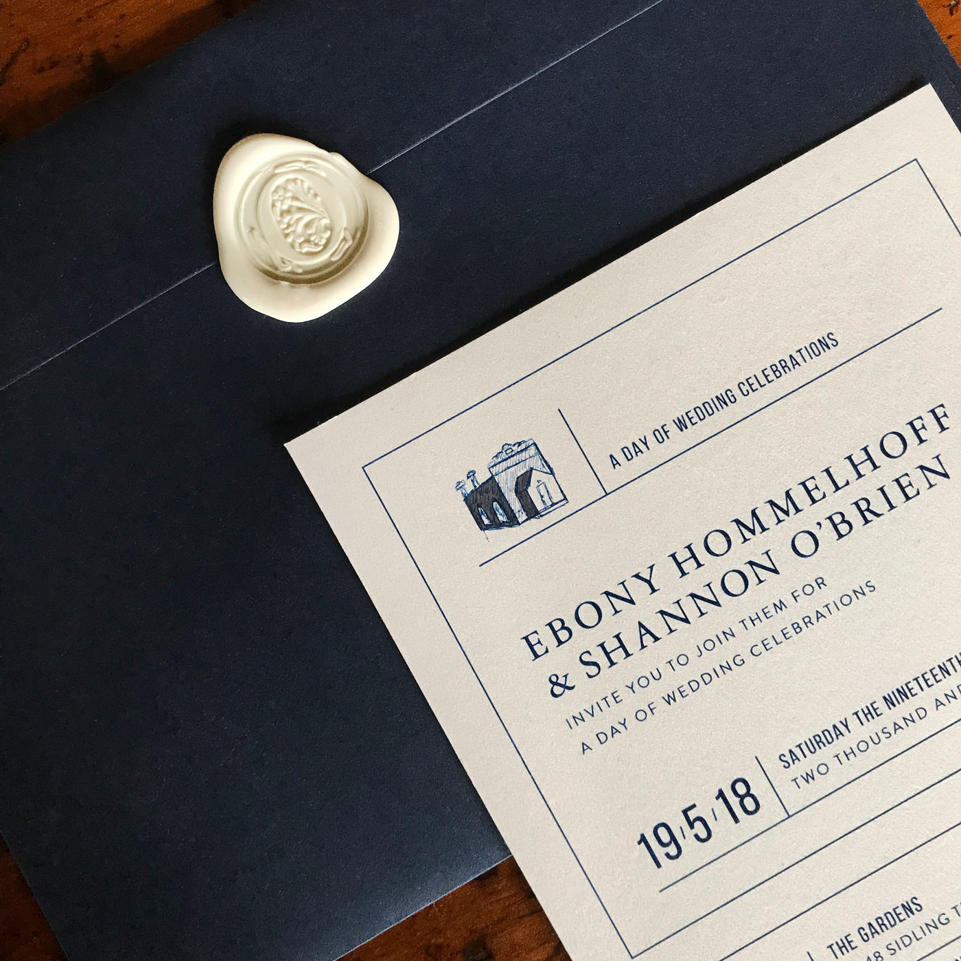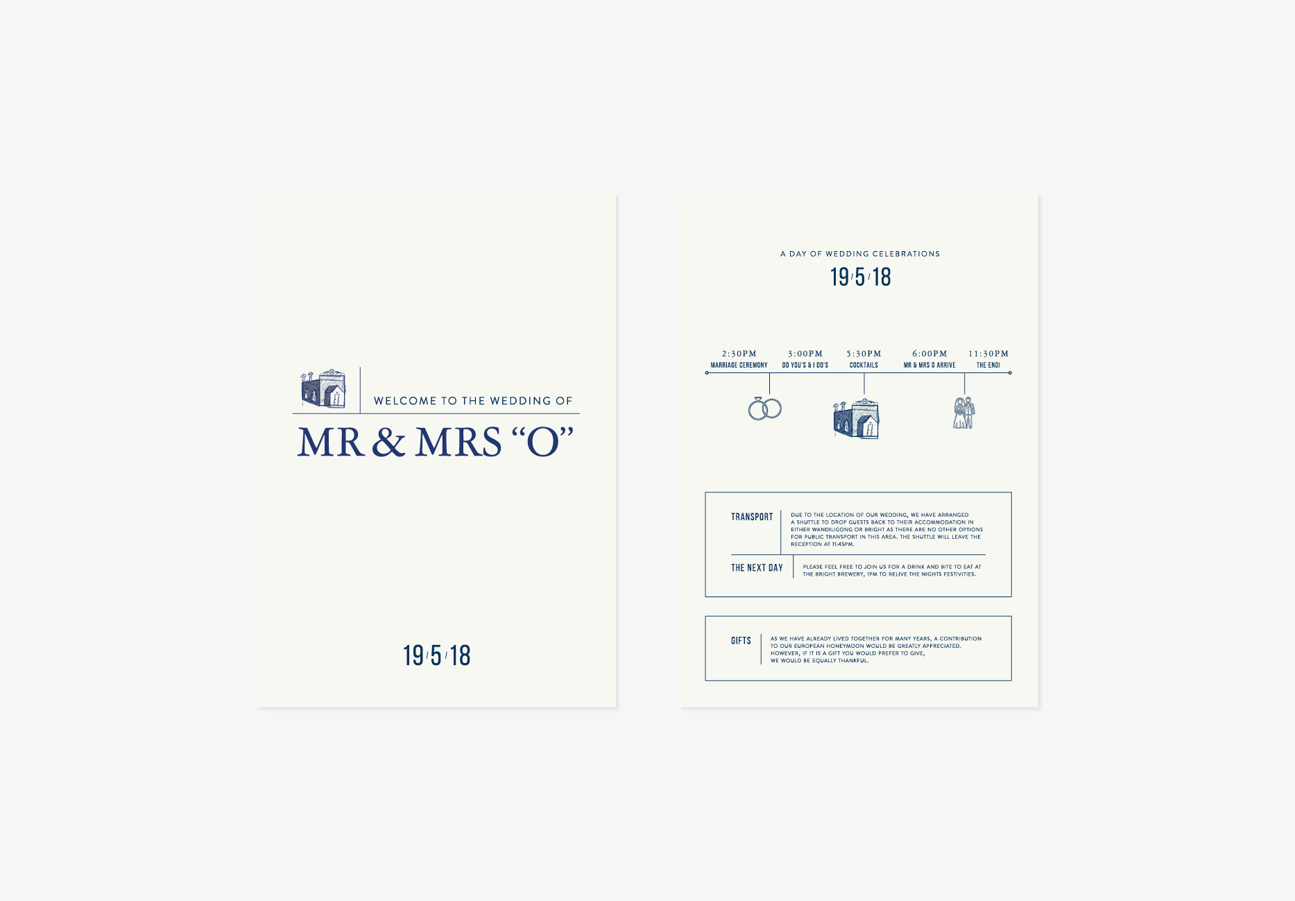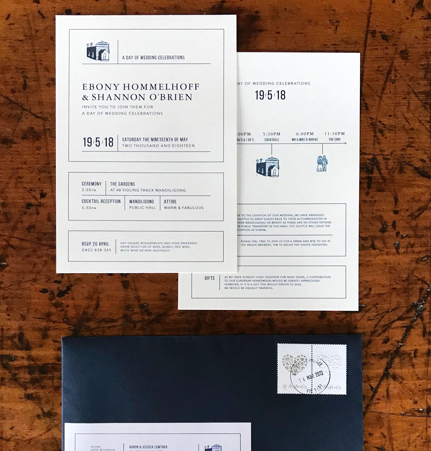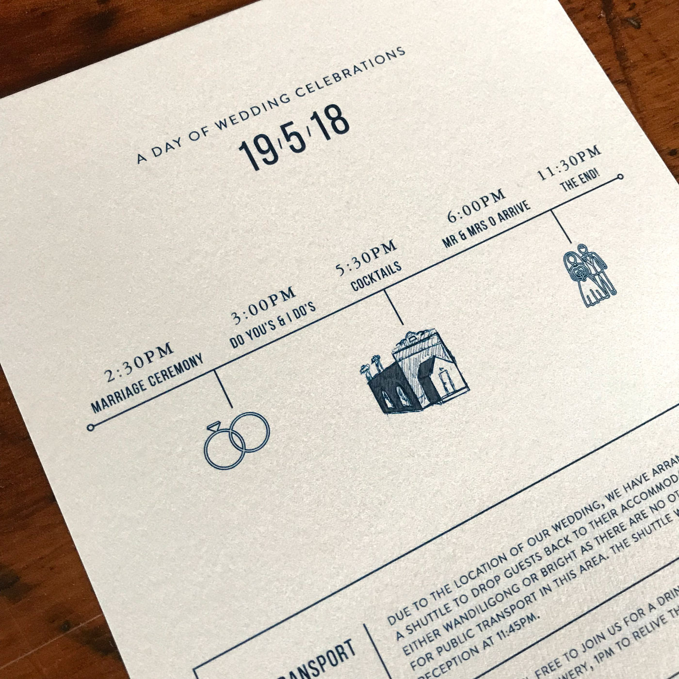 Timeless and understated, personalised stationery for a day of wedding celebrations